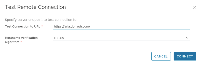 4. For Test Connection to URL enter the Aria Operations URL along with https://