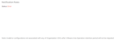 Note: Invalid or configurations not associated with any of Organisation VDCs after VMware Aria Operation retention period will not be migrated.