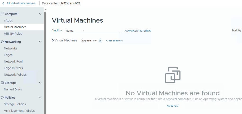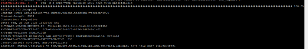 Note: The vApp and VM will no longer be seen from the UI but we can be accessed via the API.