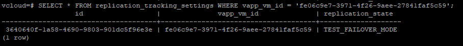 To allow us to delete the VM using the vApp via the API we need to update the replication state in the database from TEST_FAILOVER_MODE to REPLICATION_MODE:
